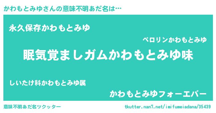 | ヘコむあだ名 | 『かわもとみゆ(笑)』『牛乳』 |