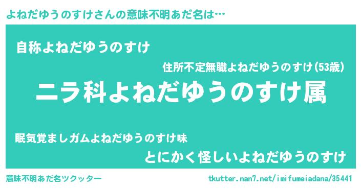 | 男性向けラノベタイトル風あだ名 | 『よねだゆうのすけ~年齢イコール彼女いない歴の魔法使い~』 |