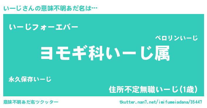 | 男性向けラノベタイトル風あだ名 | 『いーじ~年齢イコール彼女いない歴の魔法使い~』 |