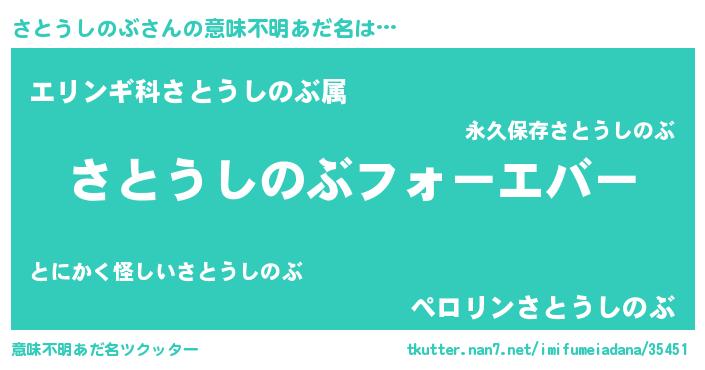 | ファンタジー風あだ名 | 『エターナルサトウシノブー』 |