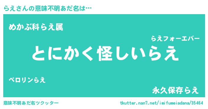 | 胡散臭い通販商品みたいなあだ名 | 『伝統あるサプリメント…その名も「らえ」』 |