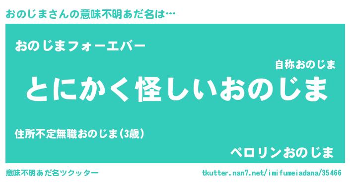 | 男性向けラノベタイトル風あだ名 | 『おのじまの嫁は女の子じゃないと思った?』 |