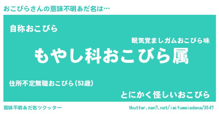 | 男性向けラノベタイトル風あだ名 | 『転生したらおこびらだった件』 |
