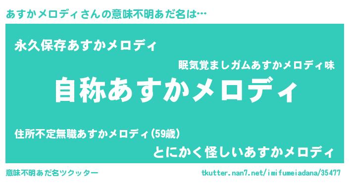 | 女子向けラノベタイトル風あだ名 | 『あすかメロディなんてお断りですっ。』 |