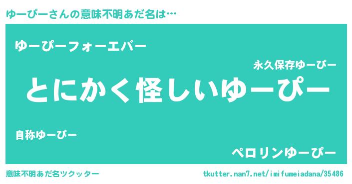 | 男性向けラノベタイトル風あだ名 | 『ダンジョンにゆーぴーを求めるのは間違っているだろうか』 |