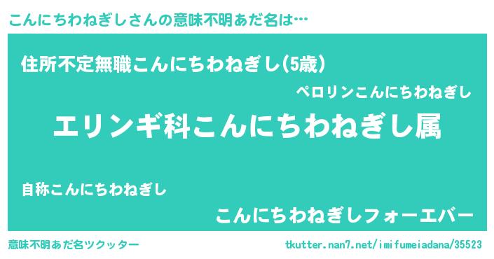 | 男性向けラノベタイトル風あだ名 | 『コンニチワネギシスレイヤー』 |