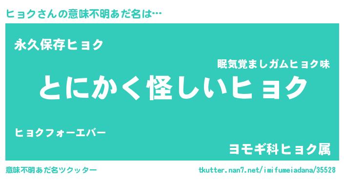 | 男性向けラノベタイトル風あだ名 | 『ヒョクの嫁は女の子じゃないと思った?』 |