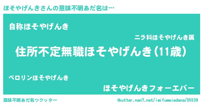 | 胡散臭い通販商品みたいなあだ名 | 『あなたにだけ特別に提供する100年もののヴィンテージワイン…その名も「ほそやげんき」』 |
