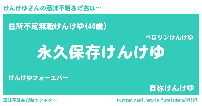 | 男性向けラノベタイトル風あだ名 | 『けんけゆという概念が存在しない退屈な世界 』 |
