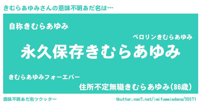 | 胡散臭い通販商品みたいなあだ名 | 『前代未聞の健康食品…その名も「きむらあゆみ」』 |