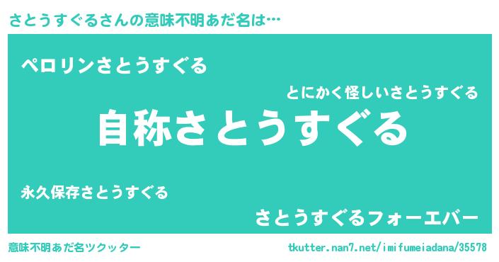 | 男性向けラノベタイトル風あだ名 | 『Re:さとうすぐるから始める異世界生活』 |