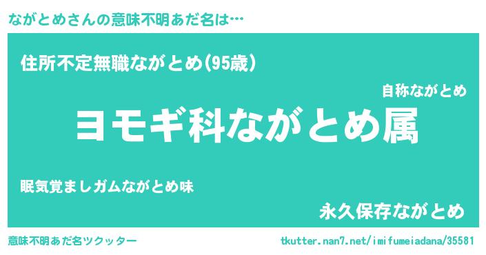 | 男性向けラノベタイトル風あだ名 | 『ながとめに滅ぼされるだけの簡単なお仕事です』 |