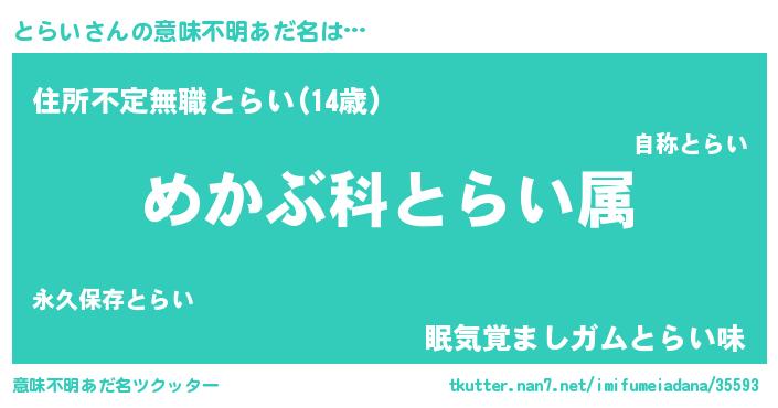 | ヘコむあだ名 | 『とらい(小並感)』『とらふぇ~』 |