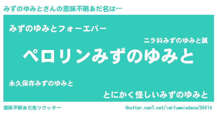 | 胡散臭い通販商品みたいなあだ名 | 『必ず成功する霊験あらたかなお札…その名も「みずのゆみと」』 |
