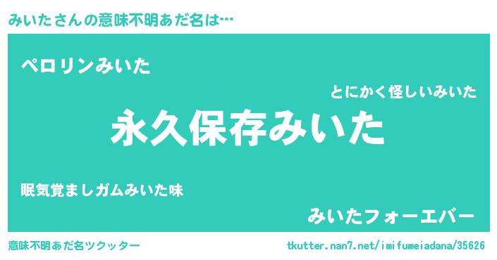 | 女子向けラノベタイトル風あだ名 | 『みいたの契約王妃』『みいた様がみてる』 |