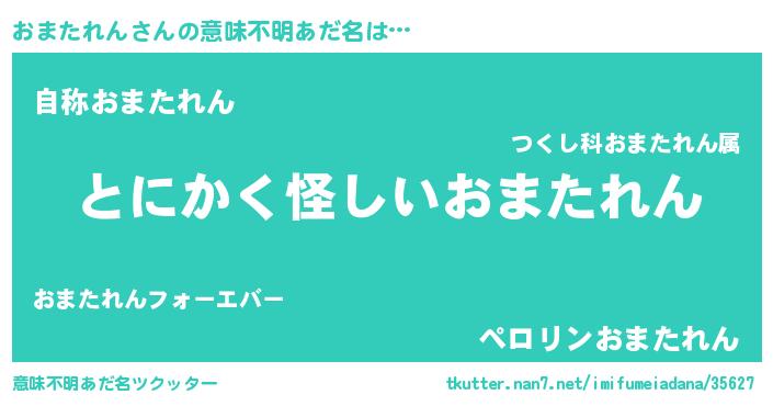 | 男性向けラノベタイトル風あだ名 | 『おまたれんの嫁は女の子じゃないと思った?』 |