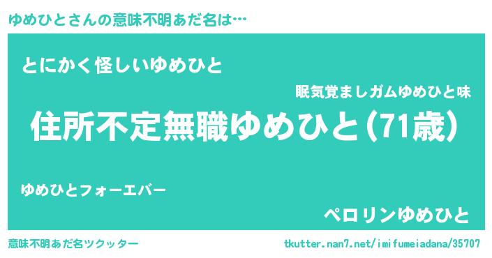 | ポケモン風あだ名 | 『ユーメイ』『ヒユメヒト』 |