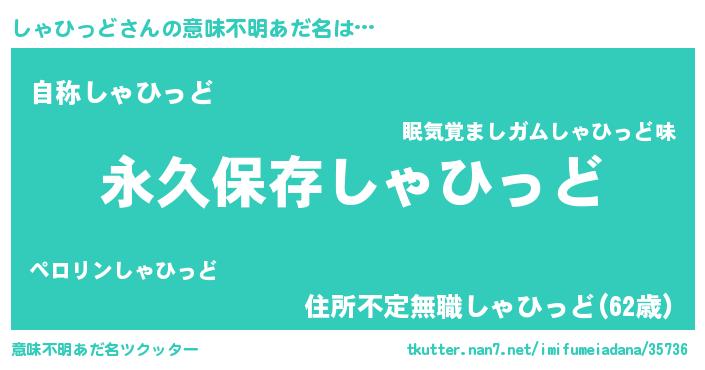 | 胡散臭い通販商品みたいなあだ名 | 『来世でも幸せになれる健康食品…その名も「しゃひっど」』 |
