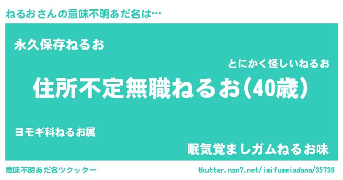 | 男性向けラノベタイトル風あだ名 | 『この素晴らしい世界にねるおを!』 |