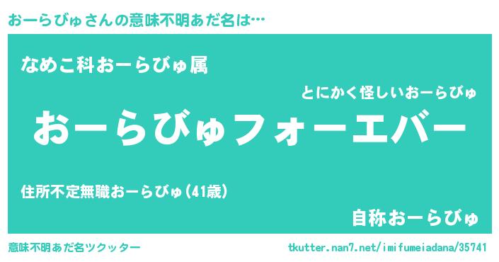 | 女子向けラノベタイトル風あだ名 | 『おーらびゅの雑貨屋さん』 |
