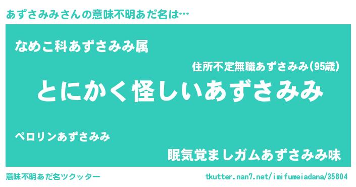 | ポケモン風あだ名 | 『アズゴンZ』『ヒアズサミミ』 |