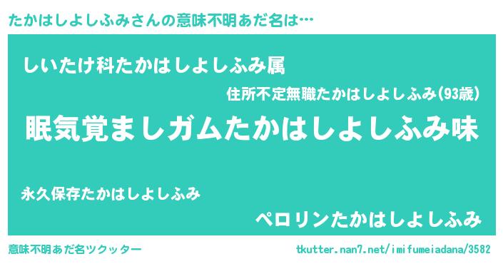 | ヘコむあだ名 | 『たかにー』『たかはしよしふみ(笑)』 |