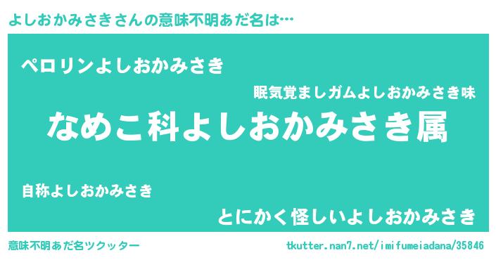 | 料理風あだ名 | 『よしおかみさきごはん』 |