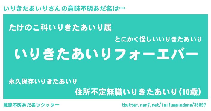 | 欧米人風あだ名 | 『いりきたあいり・ステッグマイヤー』 |