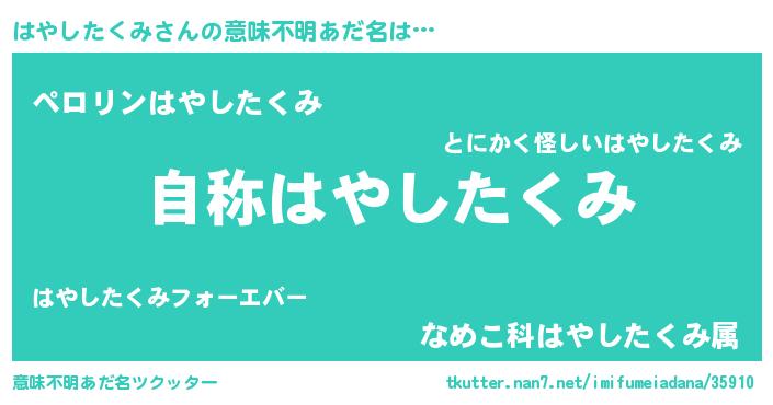 | 肩書あだ名 | 『はやしたくみ総統』『はやしたくみ大尉』 |