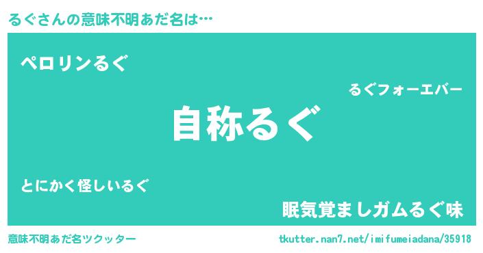 | 女子向けラノベタイトル風あだ名 | 『るぐアンティーク』『死神るぐの再婚』 |