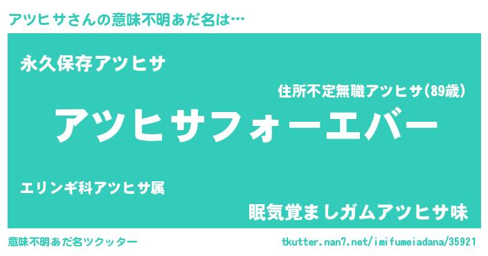 | ファンタジー風あだ名 | 『エターナルアツヒサー』『クインアット』 |