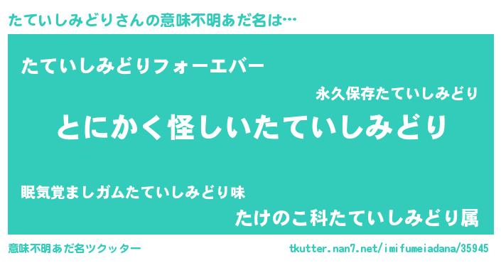 | 女子向けラノベタイトル風あだ名 | 『たていしみどりの卵を拾いまして』 |