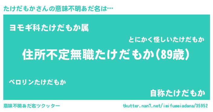 | 男性向けラノベタイトル風あだ名 | 『この素晴らしい世界にたけだもかを!』 |