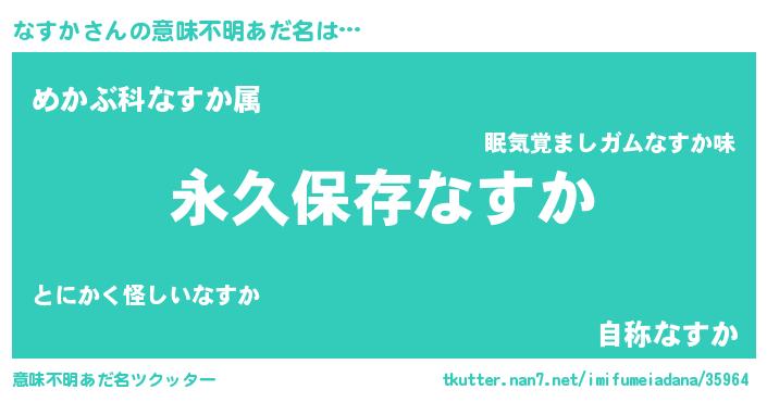 | 男性向けラノベタイトル風あだ名 | 『なすかという概念が存在しない退屈な世界 』 |