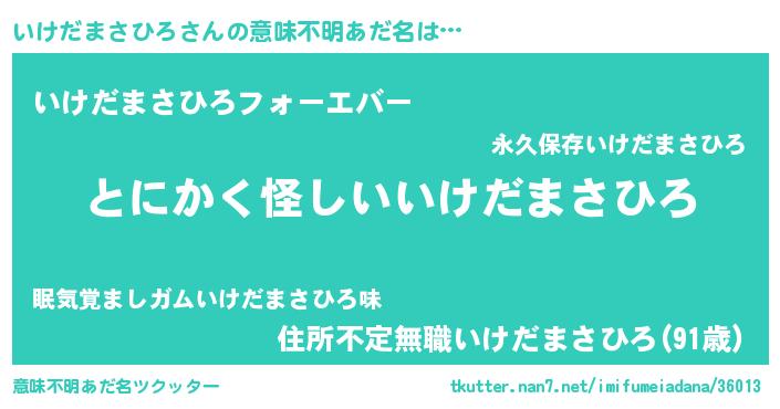 | ポケモン風あだ名 | 『ヒイケダマサヒロ』『イケダダネ』 |