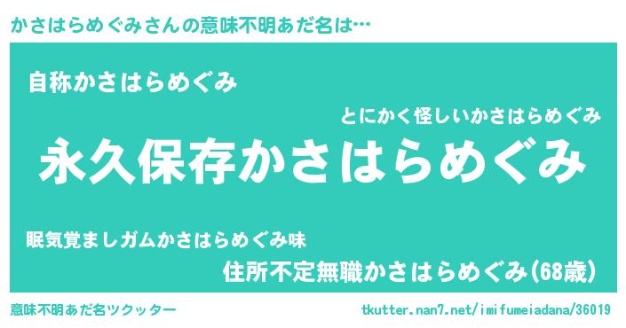 | 男性向けラノベタイトル風あだ名 | 『誰もが恐れるあのかさはらめぐみが、ぼくの専属メイドになるようです。』 |