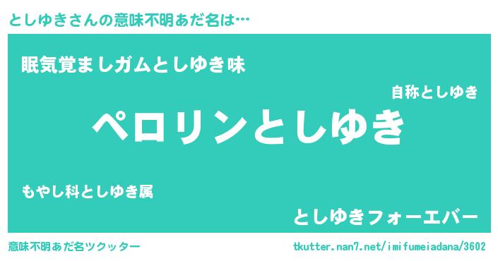 | 男性向けラノベタイトル風あだ名 | 『としゆきに滅ぼされるだけの簡単なお仕事です』 |