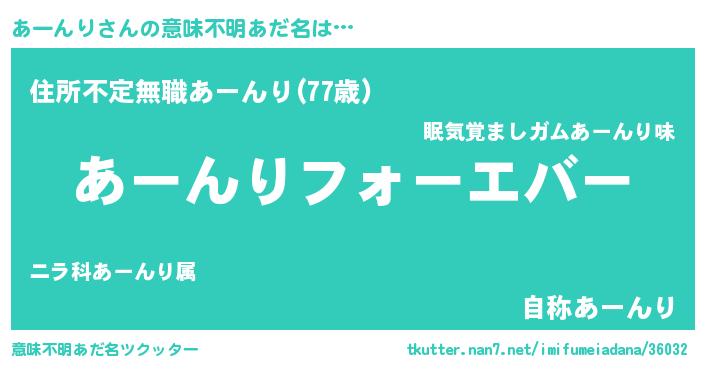 | 欧米人風あだ名 | 『あーんりクリステル』 |