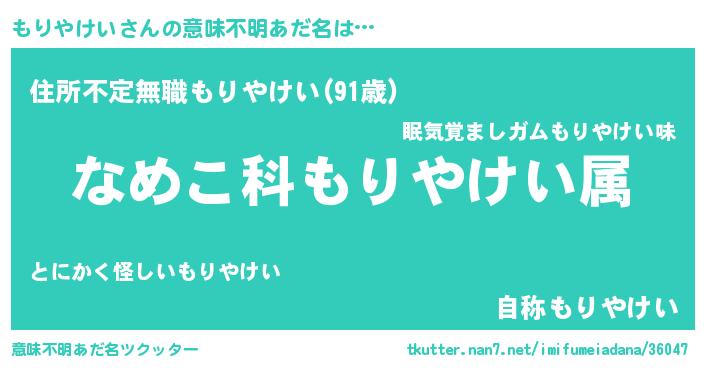 | 男性向けラノベタイトル風あだ名 | 『転生したらもりやけいだった件』 |