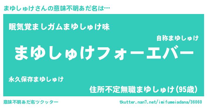 | 欧米人風あだ名 | 『まゆしゅけクリステル』 |