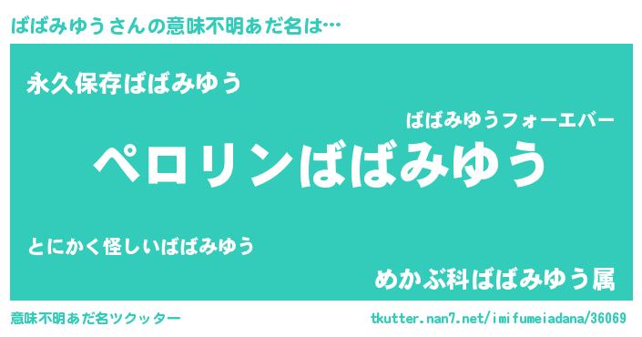 | 男性向けラノベタイトル風あだ名 | 『ババミユウアートオンライン』 |