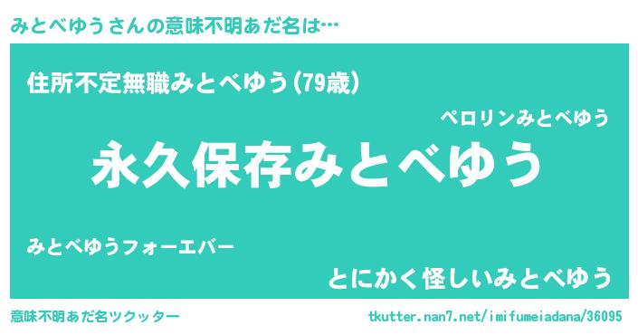 | 胡散臭い通販商品みたいなあだ名 | 『前代未聞の健康食品…その名も「みとべゆう」』 |