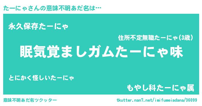 | 胡散臭い通販商品みたいなあだ名 | 『100人中100人が認めたマグネット磁石…その名も「たーにゃ」』 |