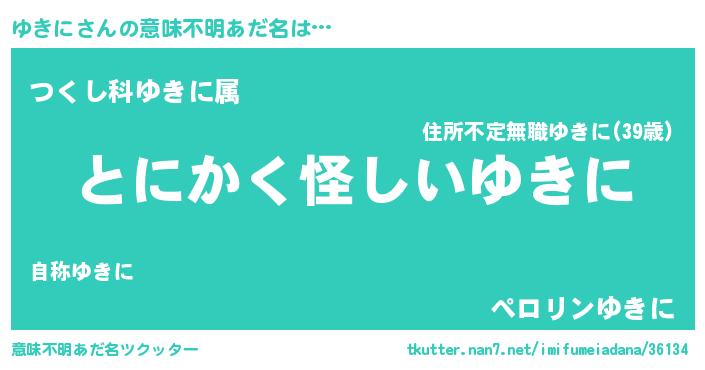 | 欧米人風あだ名 | 『アンジェラ・ゆきに』『ウサインゆきに』 |