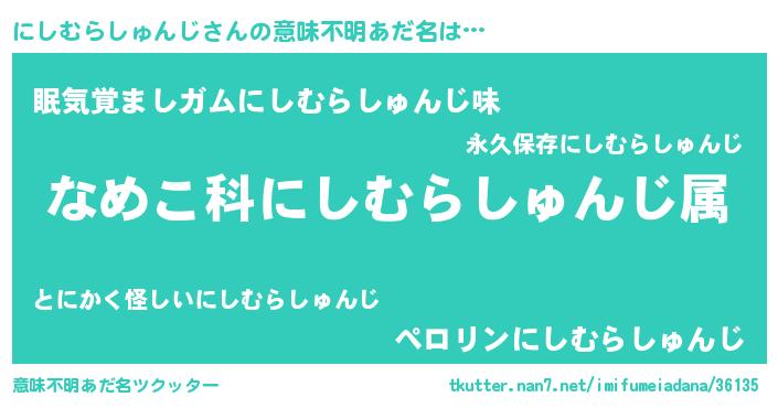 | 男性向けラノベタイトル風あだ名 | 『転生したらにしむらしゅんじだった件』 |