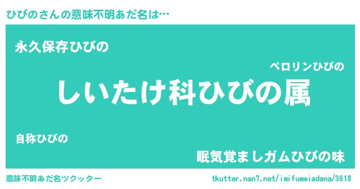 | 胡散臭い通販商品みたいなあだ名 | 『絶対に幸福をもたらす水素水…その名も「ひびの」』 |