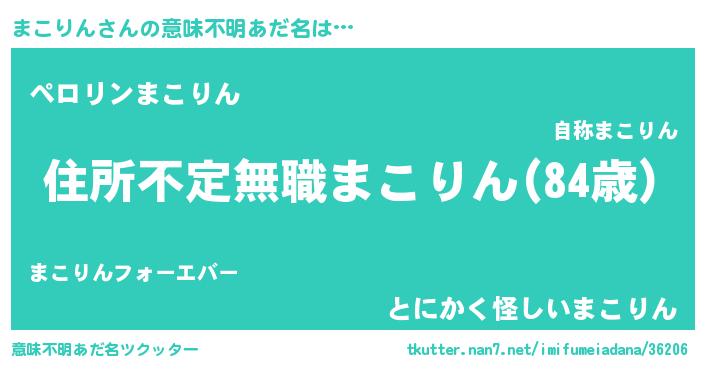| 女子向けラノベタイトル風あだ名 | 『悪役まこりんに転生したようですが、知った事ではありません』 |