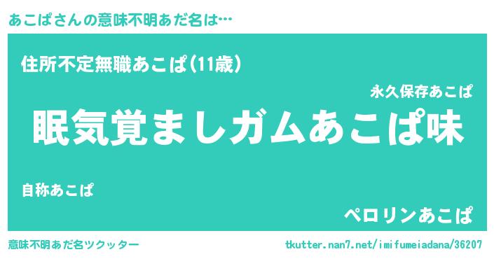 | 男性向けラノベタイトル風あだ名 | 『うちのあこぱが世界を掌握している!』 |