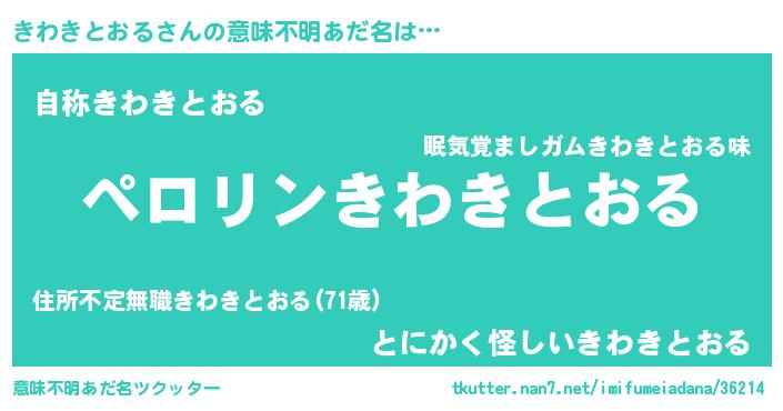 | ヒーロー風カッコイイあだ名 | 『スーパーキワキトオル』『天弓騎士キワ』 |
