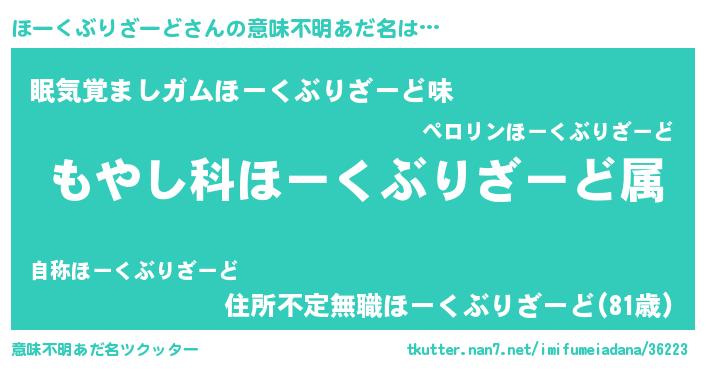 | 欧米人風あだ名 | 『トリンドルほーくぶりざーど』 |
